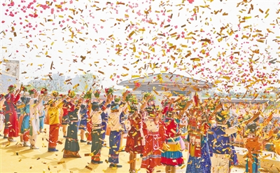 社会各界代表及近百家新闻媒体5000余人在现场参加大典。图片由本报记者马健徐宗福拍摄。